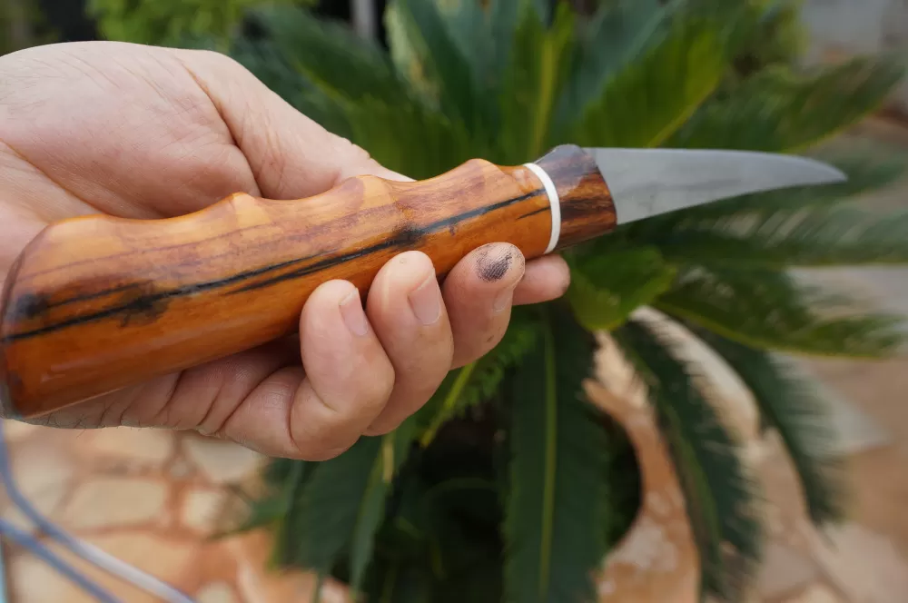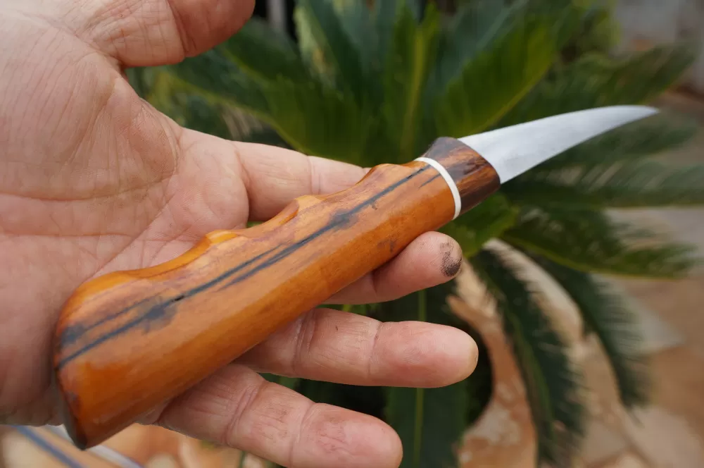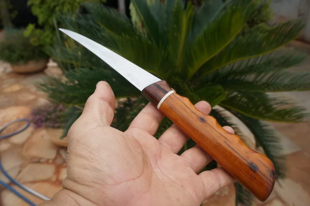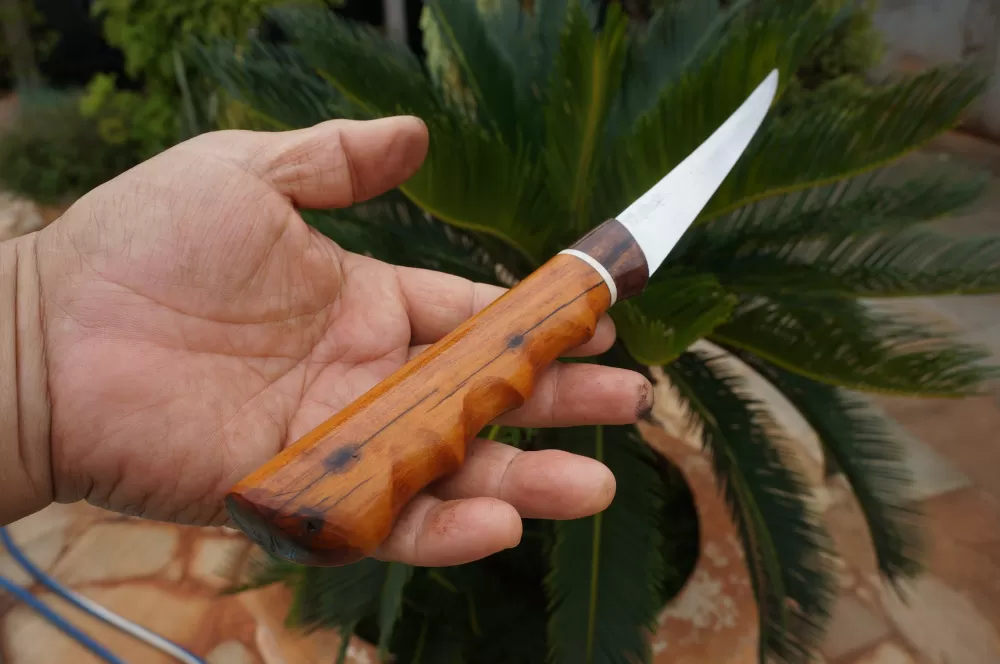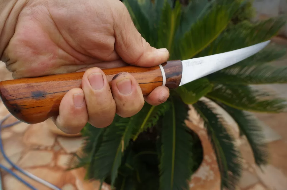 O cabo ergonômico esculpido artrsanalmente, é feito para se adaptar confortavelmente à mão, oferecendo controle máximo durante a filetagem. Feito de madeiras de lei proporcionando durabilidade e aderencia, o cabo proporciona uma empunhadura segura, mesmo quando as mãos estão molhadas.