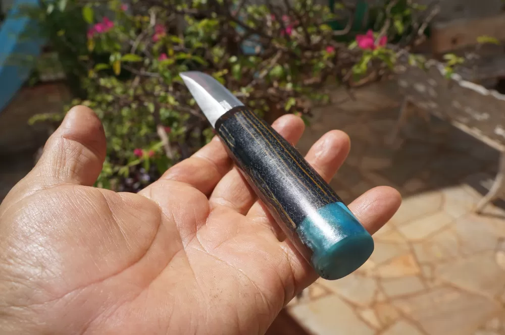 Seu design é elegante e atemporal, com uma lâmina curta e afiada, esta no caso, foi feita de aço de alta qualidade, o Carbono 1090.